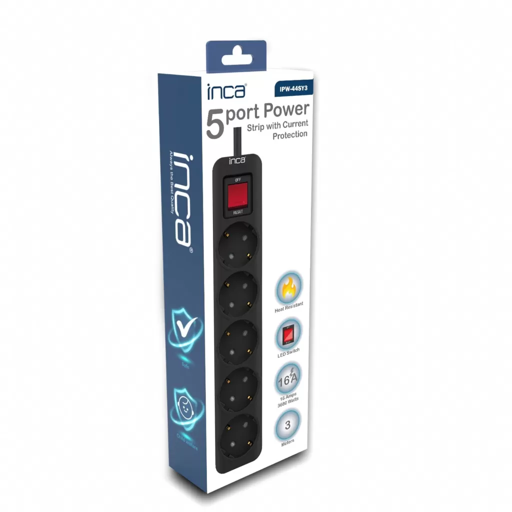 Inca IPW-44SY3 5 port Akım Korumalı Led Tuşlu Priz 3M - Siyah