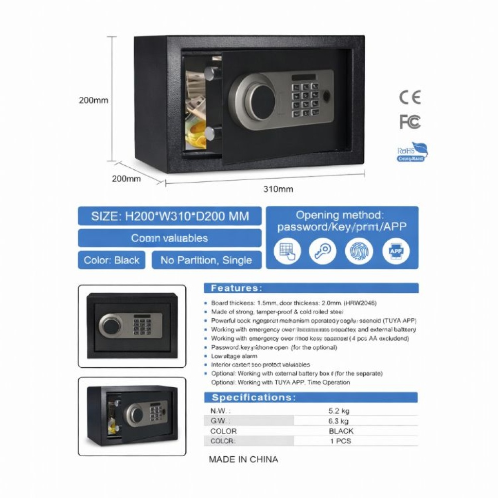 Yaklaşık 20×31×20 cm ebatlarıyla ciddi büyüklükte değerli evrak, nakit, dijital depolama cihazları gibi “küçük ama önemli” saklama ihtiyaçlarını karşılayabilir.
